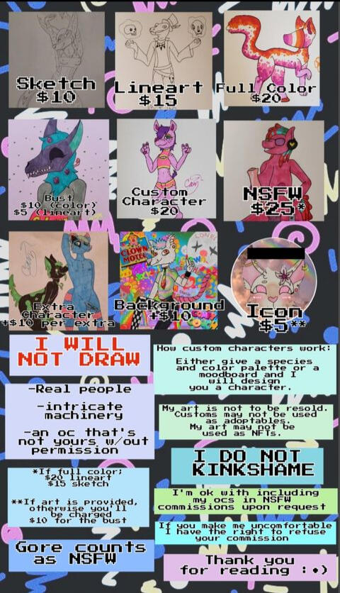 This doesn't load properly on mobile, so if you can't see the whole image DM me for my prices!